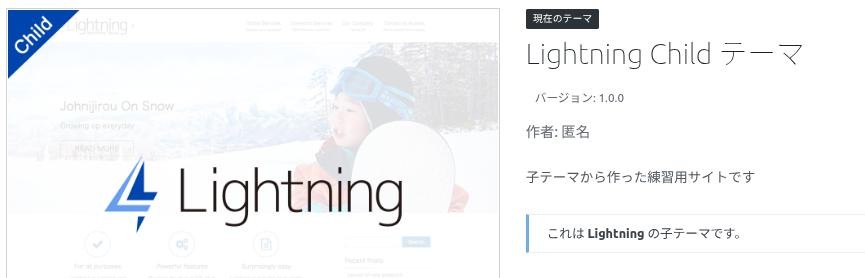 なお、テーマは普段使っている"Lightning"を親テーマとしていますが、Lightningの子テーマであれば公式サイトからダウンロードできますので、こちら使えば便利です。